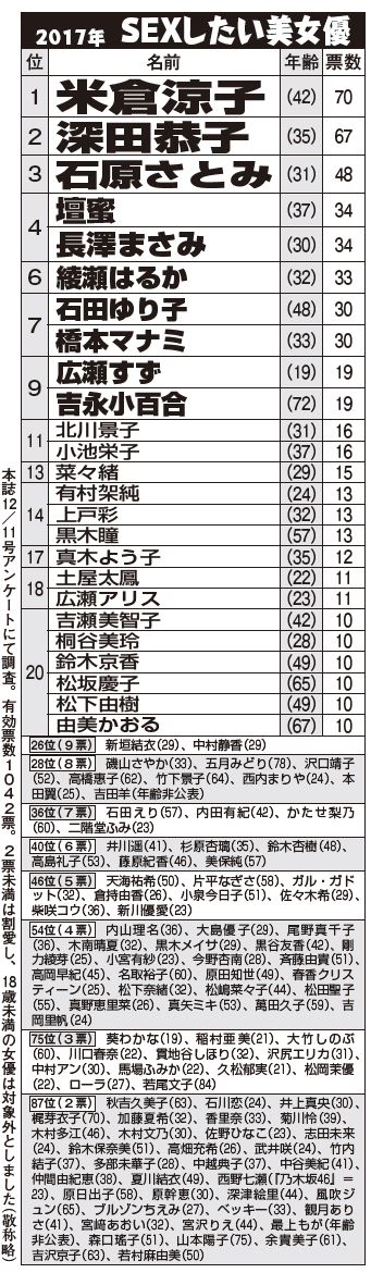 5. 読者2000人アンケート! SEXしたい「美女優&女子アナ」ランキング